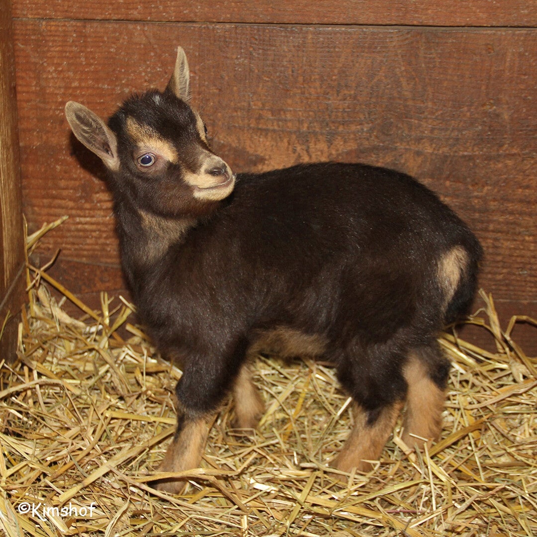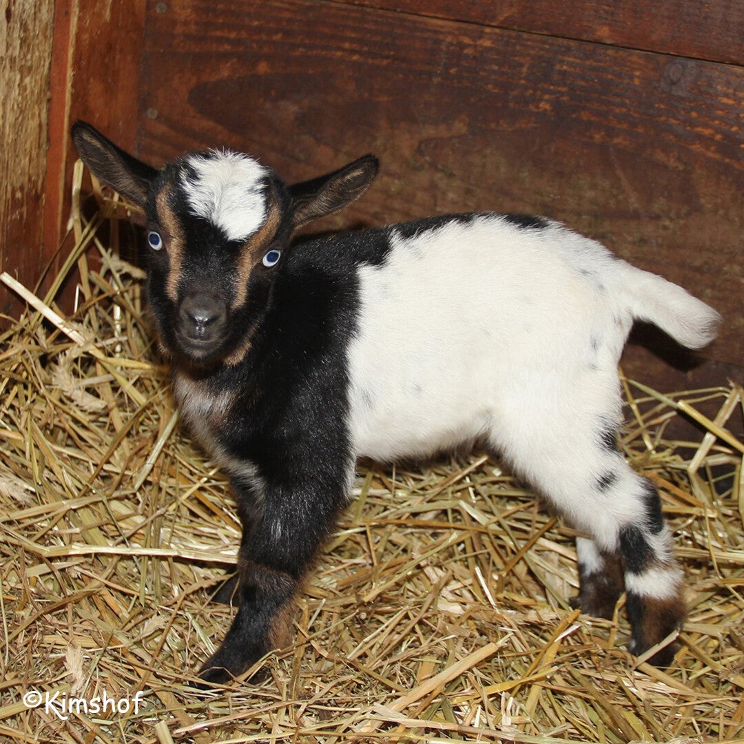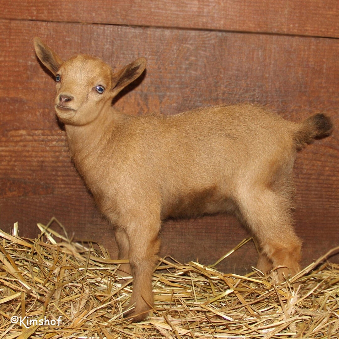 Onze eerste dwerggeitjes arriveerden in 2003. Al snel had de geitenmicrobe ons gezin te pakken en onze hobby groeide uit een echte passie! Ondertussen hebben we geitjes in de meest uiteenlopende kleuren. Elk jaar worden in het voorjaar lammetjes geboren. Het is ons doel om lammetjes te fokken in de meest unieke kleurvariaties zonder daarbij de bouw of het type van de dwerggeit uit het oog te verliezen. Een bijzondere mijlpaal bereikten we in 2022 met de aankoop van een blauwogige! dwergbok. Voorjaar 2023 hebben we de eerste lammetjes met blauwe ogen mogen verwelkomen. Een primeur voor 't Kimshof!
