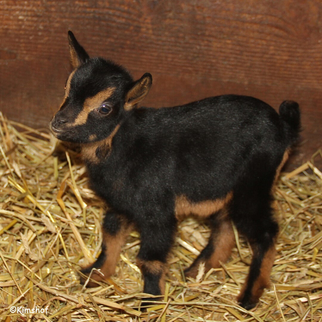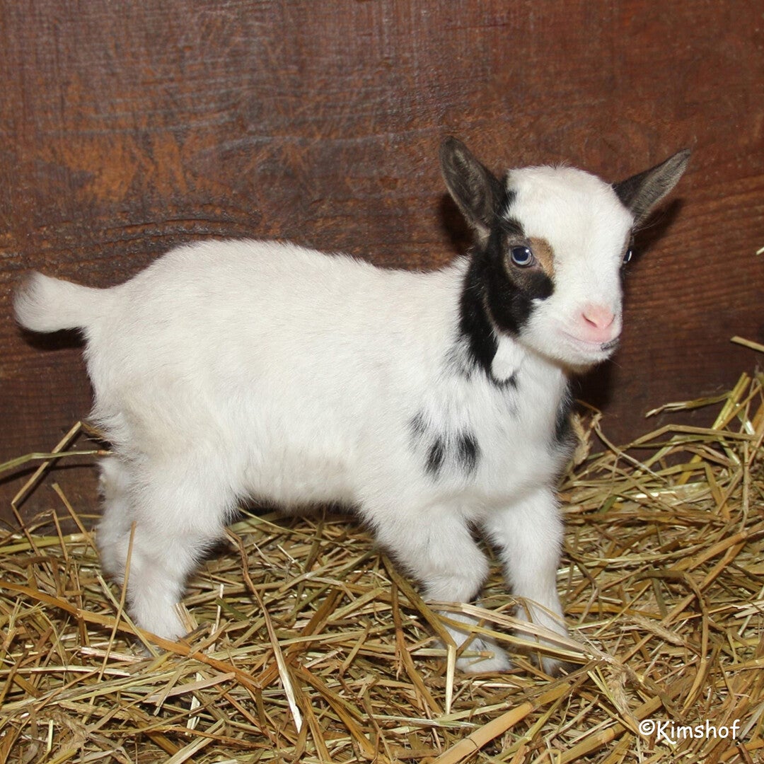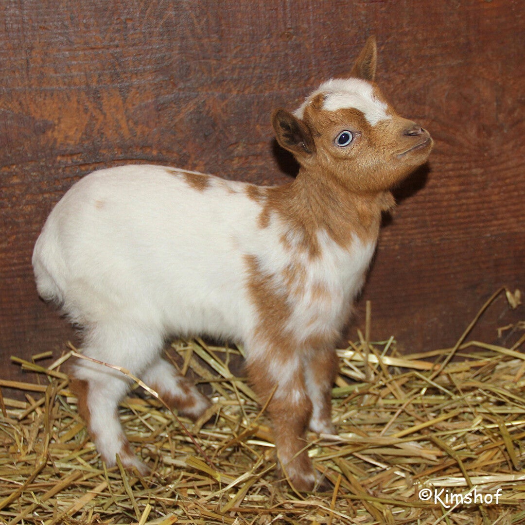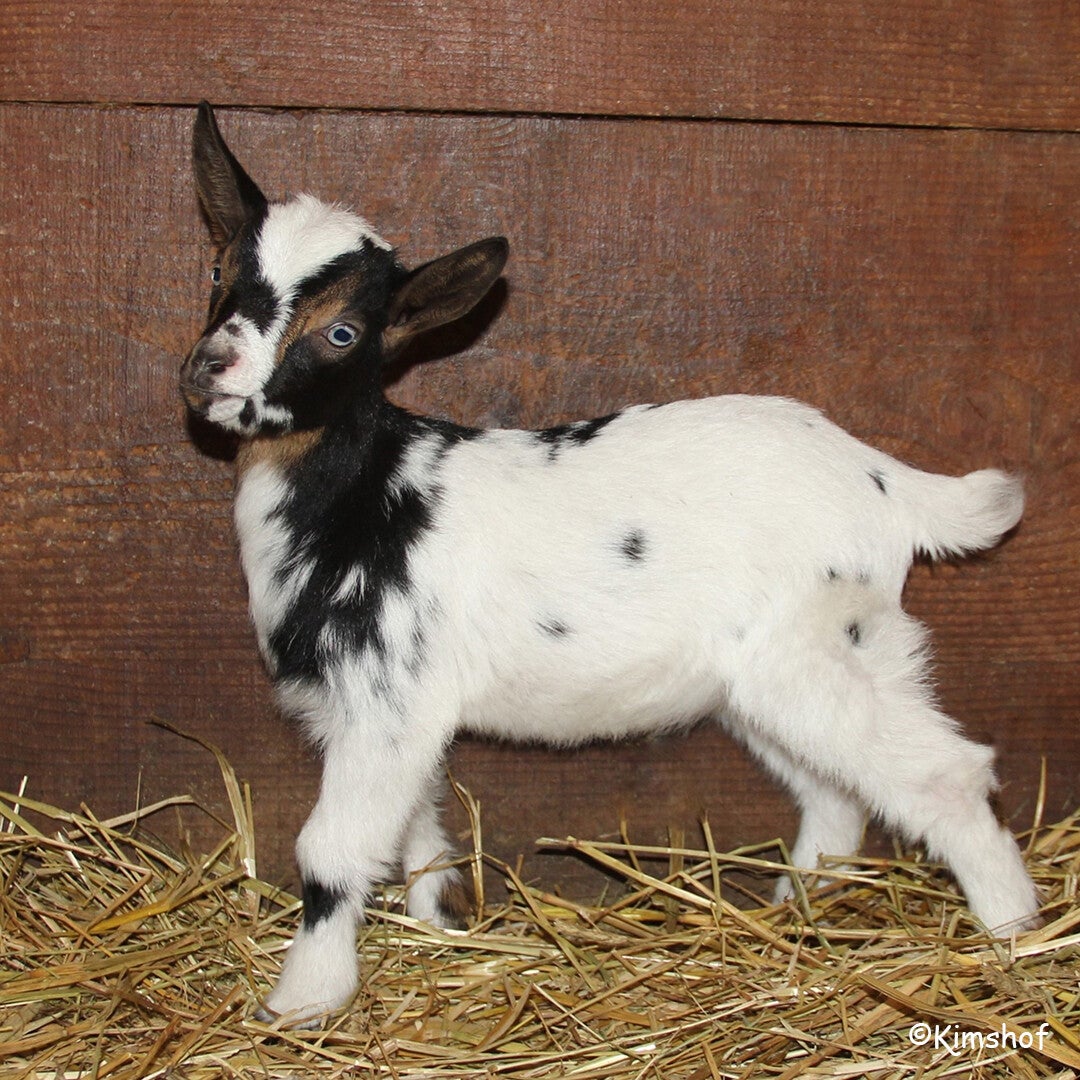 Onze eerste dwerggeitjes arriveerden in 2003. Al snel had de geitenmicrobe ons gezin te pakken en onze hobby groeide uit een echte passie! Ondertussen hebben we geitjes in de meest uiteenlopende kleuren. Elk jaar worden in het voorjaar lammetjes geboren. Het is ons doel om lammetjes te fokken in de meest unieke kleurvariaties zonder daarbij de bouw of het type van de dwerggeit uit het oog te verliezen. Een bijzondere mijlpaal bereikten we in 2022 met de aankoop van een blauwogige! dwergbok. Voorjaar 2023 hebben we de eerste lammetjes met blauwe ogen mogen verwelkomen. Een primeur voor 't Kimshof!