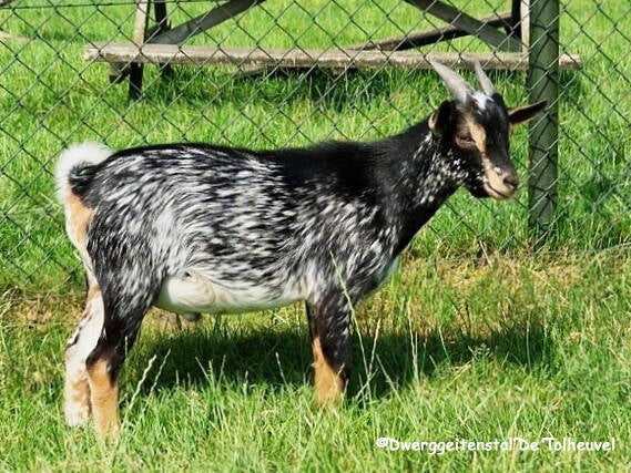 Maandenlang waren we op zoek naar de geschikte dwergbok om ons bokkenteam te versterken. Net toen we de hoop bijna hadden opgegeven, kwamen we deze topper tegen! Hij is geboren in dwerggeitenstal De Tolheuvel en na contact met de collega-dwerggeitenfokster, Henriëtte, wisten we het zeker: deze hermelijnbok is een geweldige aanwinst voor onze stal. We kozen voor dit boklam de naam Romeo van de Tolheuvel.