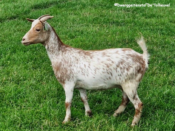 Wat we extra leuk vinden, is dat er nog een vleugje 'Kimshof-bloed' door de aderen van deze dwergbok stroomt. Cody’s moeder is namelijk een dochter van Jerommeke van 't Kimshof.