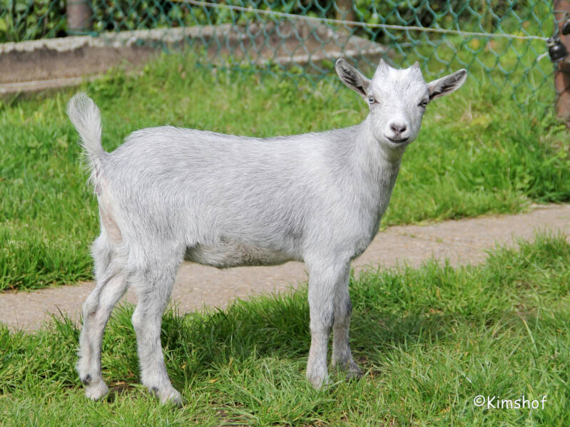 Eén van de meisjes kreeg de blauwe ogen van haar vader en met haar lichte schimmel tan kleurtje is ze het evenbeeld van haar moeder. Dit blijvertje kreeg de naam QT Blue van 't Kimshof. QT Blue, afkomstig van een drieling, is deels opgegroeid als fleslammetje. Haar speelse en aanhankelijk karakter maakt dit meisje een echte favoriet binnen onze kudde.