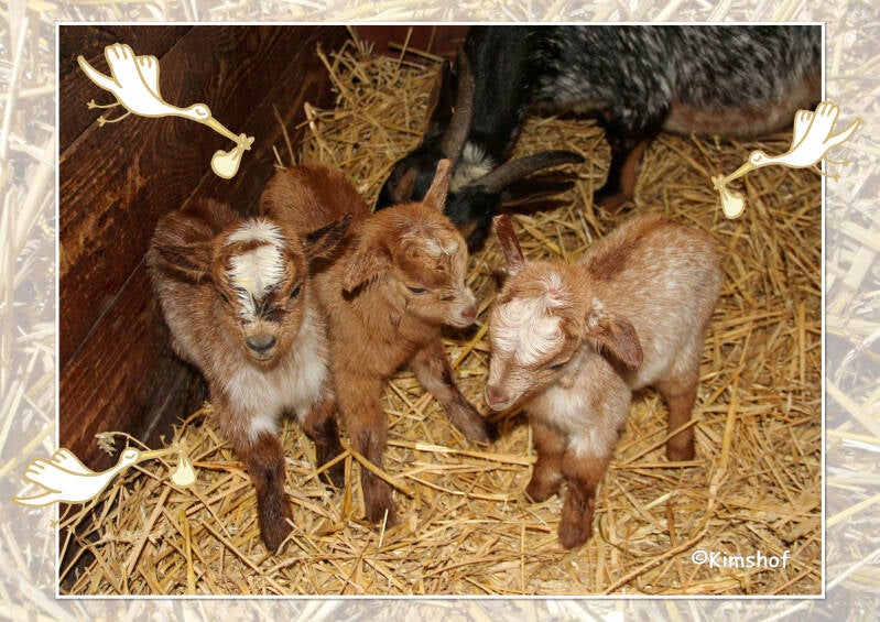 Op de uitgerekende dag, 18 januari 2024, kreeg Lady Lilo van 't Kimshof drie mooie lammetjes. Haar knappe abrikoos bokje met enkele schimmelaccenten vond elders een warme thuis. De twee dochters kregen een bijzondere kleurslag, een perfecte mix van beide ouders. Mama Lady Lilo zorgde voor het hermelijn patroon en papa Amedé van 't Kruisemhofke gaf zijn kleur door. Het is de eerste keer dat we in onze stal deze kleurslag hebben gefokt. Wij zijn alvast megafan van deze meisjes! Jij ook?