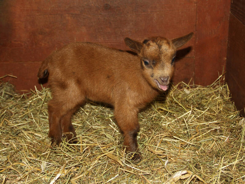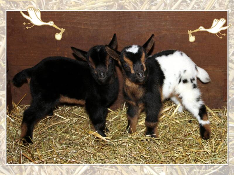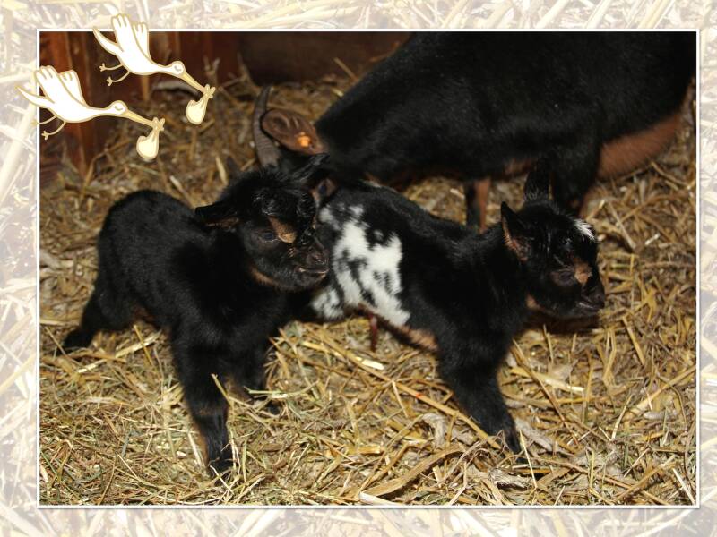 Op 23 januari lammerde Jutta. Zij kreeg na een dracht van 149 dagen twee abrikooskleurige dwergjes: een bokje en een geitje. Zij lammerde voor de eerste keer en ontpopte zich tot een zeer zorgzame moedergeit. Het geitlammetje is heel wat kleiner dan haar broer maar staat aardig haar mannetje!