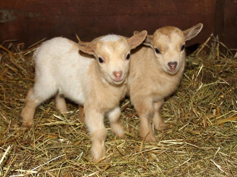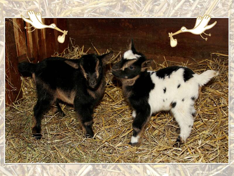 Fleur en Jerommeke zorgden voor deze twee leukerds: een bokje en een geitje. De lammetjes werden geboren op 31 januari, na een dracht van 150 dagen. Dit actieve en speelse duo zal zorgzame moeder Fleur weinig rust gunnen...