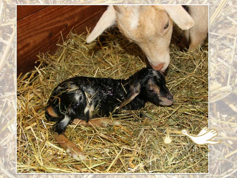 Het was een supersnelle bevalling voor Gremlynn met een fier geitje en een gitzwart, blinkend bokje als resultaat. Gremlynn lammerde eveneens op 31 januari, een beetje later dan Fleur. Haar dracht duurde 145 dagen. Moederkloek Gremlynn kan zich weer volop over haar kroost ontfermen. De vader van dit stelletje is Klaas Junior.