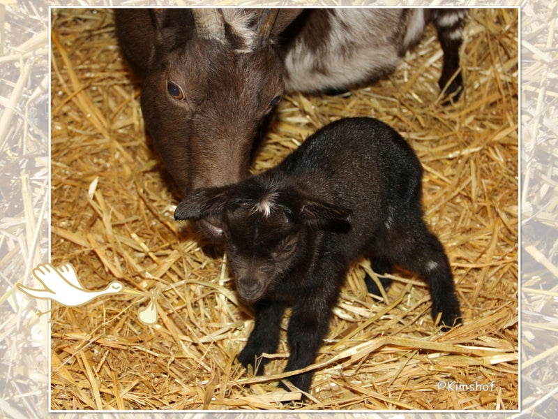 Na een supersnelle bevalling kwam op 16 januari het zwartschimmel tan dochtertje van Lady Lilo van 't Kimshof ter wereld. Lady Lilo was 147 dagen drachtig. Zij lammerde voor de eerste keer en ontpopte zich snel tot een zeer zorgzame moedergeit. De vader van dit schattig meisje is Macho van 't Kimshof.