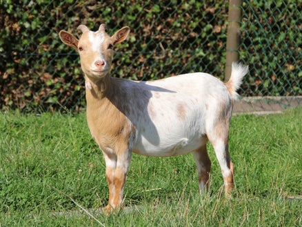 Na meerdere vruchteloze dekkingen bleek Jinja van 't Kimshof dan toch EINDELIJK drachtig. Zij was uitgerekend op 25 februari maar daar dacht Jinja duidelijk anders over... Na enkele zenuwslopende dagen lammerde ze EINDELIJK op 5 maart na een dracht van 157! dagen. En EINDELIJK was daar ook het zo gehoopte abrikoos stippel geitje. Hoera! Alle inspanningen en veel geduld werden dik beloond! Fiere vader van deze aanwinst is Leffe.
