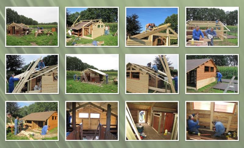 Tenslotte verplaatsten we ons eerste bokkenstalletje naar een andere wei en maakte een bokkenonderkomen bij. (foto 15)