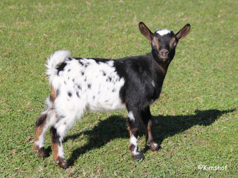 Het stippel geitlammetje maakt ons enorm trots. Zij combineert werkelijk de beste eigenschappen van haar ouders en is een echte aanwinst voor onze stal. Zij kreeg de naam Roxanne Blue van 't Kimshof.